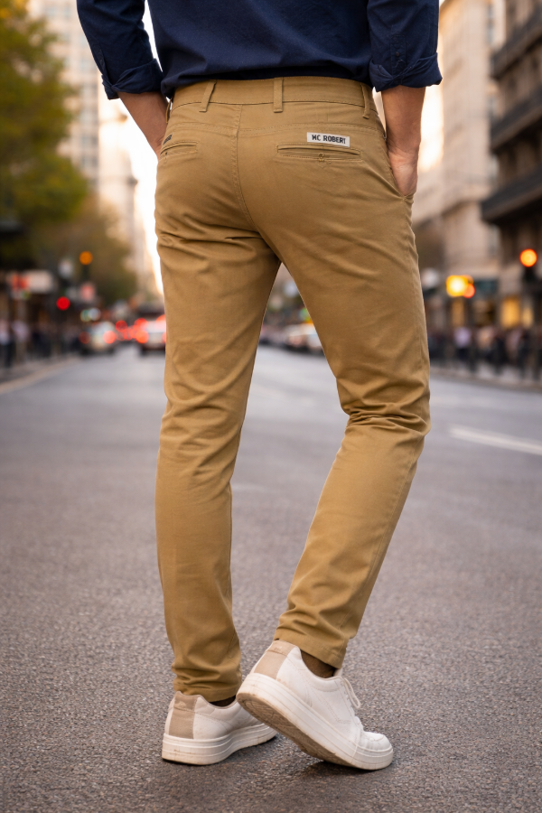 Pantalón Hombre de Gabardina Elastizado Chino - Camel